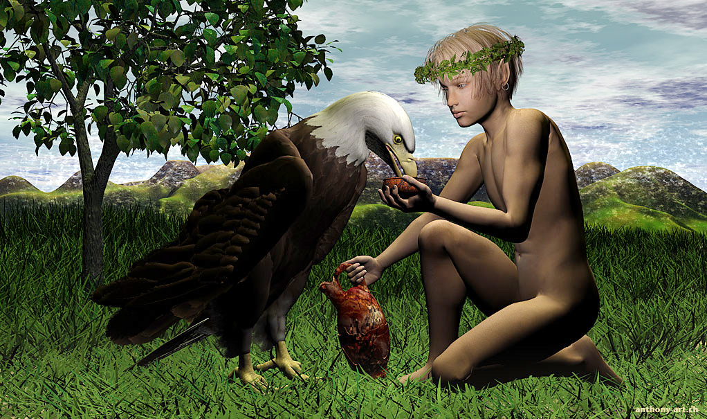 HERMES: No matter: I will lead you, for I myself spent some time on Ida when Zeus was in love with his Phrygian lad, and I often came here when he sent me down to watch the boy. Indeed, when he was in the eagle, I flew beside him and helped him to lift the pretty fellow, and if my memory serves me, it was from this rock just here that Zeus caught him up. You see, he chanced to be piping to his flock then, and Zeus, flying down behind him, grasped him very delicately in his talons, held in his beak the pointed cap which was on the boy’s head, and bore him on high, terrified and staring at him with his head turned backwards. So then I took the syrinx, for he had let it fall in his fright […]