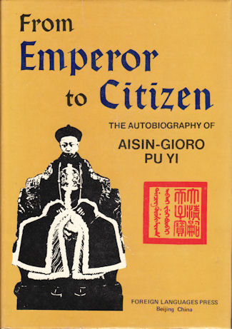 Puyi 溥儀 (7 February 1906 – 17 October 1967) was the last emperor of China, where he reigned as the child Xuantong Emperor from 1908 to 1912 and for eleven days in 1917. Later, he was set up by the Japanese as their puppet ruler in his ancestral homeland of Manchukuo, of which he was Chief Executive 1932-4 and “Kangde Emperor” 1934-45. Captured, imprisoned and rehabilitated, he finally returned to live in communist Peking as a private citizen and wrote an autobiography, Wode Qian Bansheng 我的前半生, translated as From Emperor to Citizen (both Peking, 1964), with government endorsement and the help of an editor, Li Wenda, as ghostwriter.